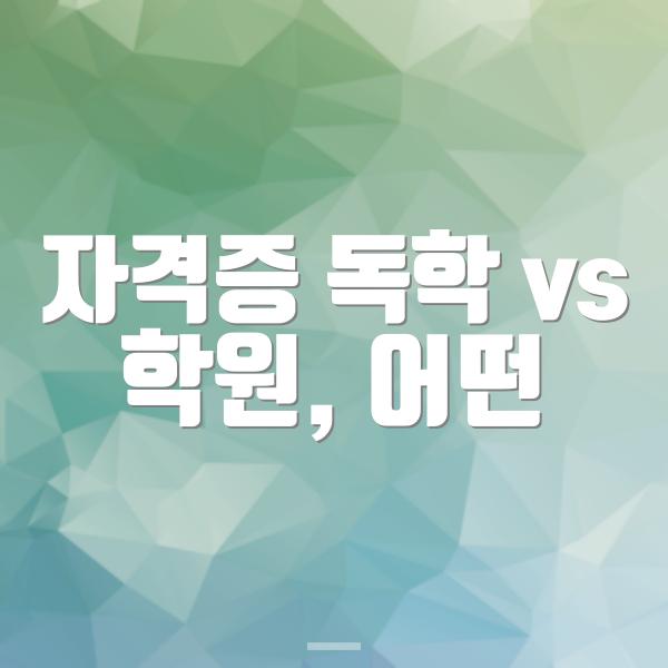 자격증 취득을 위한 방법으로 '독학'과 '학원' 중 어떤 것이 더 효과적일까요? 그 선택은 각 개인의 학습 스타일과 목표에 따라 달라질 수 있습니다.