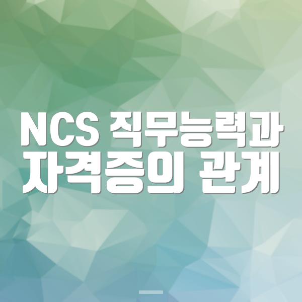 NCS 직무능력과 자격증의 관계는 매우 중요합니다. 이 관계를 잘 이해하고 활용하는 것이 구직자의 경쟁력을 높이는 기본이 됩니다.
